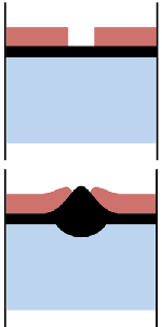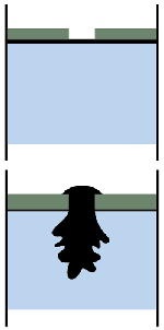 - Oţelul rugineşte acolo unde filmul de vopsea este defect (fisurat). Rugina apărută pe oţel, mai întâi în defectele stratului de vopsea, se extinde pe sub filmul de vopsea, provocând desprinderea vopselei de pe suprafaţa oţelului. Coroziunea oţelului fiind o reacţie auto-catalitică, poate continua sub stratul de vopsea, dar poate fi diminuată sau oprită prin repararea defecţiunii.